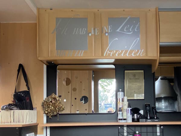 Mein Salon auf Rädern bietet eine intime und geschützte Umgebung. Sie können sich entspannen, während ich mich um Ihr Haar kümmere.